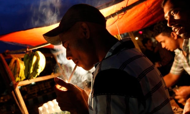 A man lights a cigarette in front of a roadside tea stall in Dhaka, Bangladesh. Photograph: Andrew Biraj/Corbis
